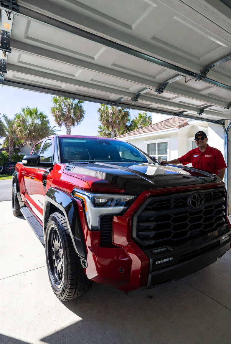 - Preparation and Safety Measures: Our technicians arrive at your service address in Cape Coral, FL, fully equipped with high-quality parts and specialized tools tailored to your garage door’s needs, whether it’s a modern tech, carriage house, or platinum series door.